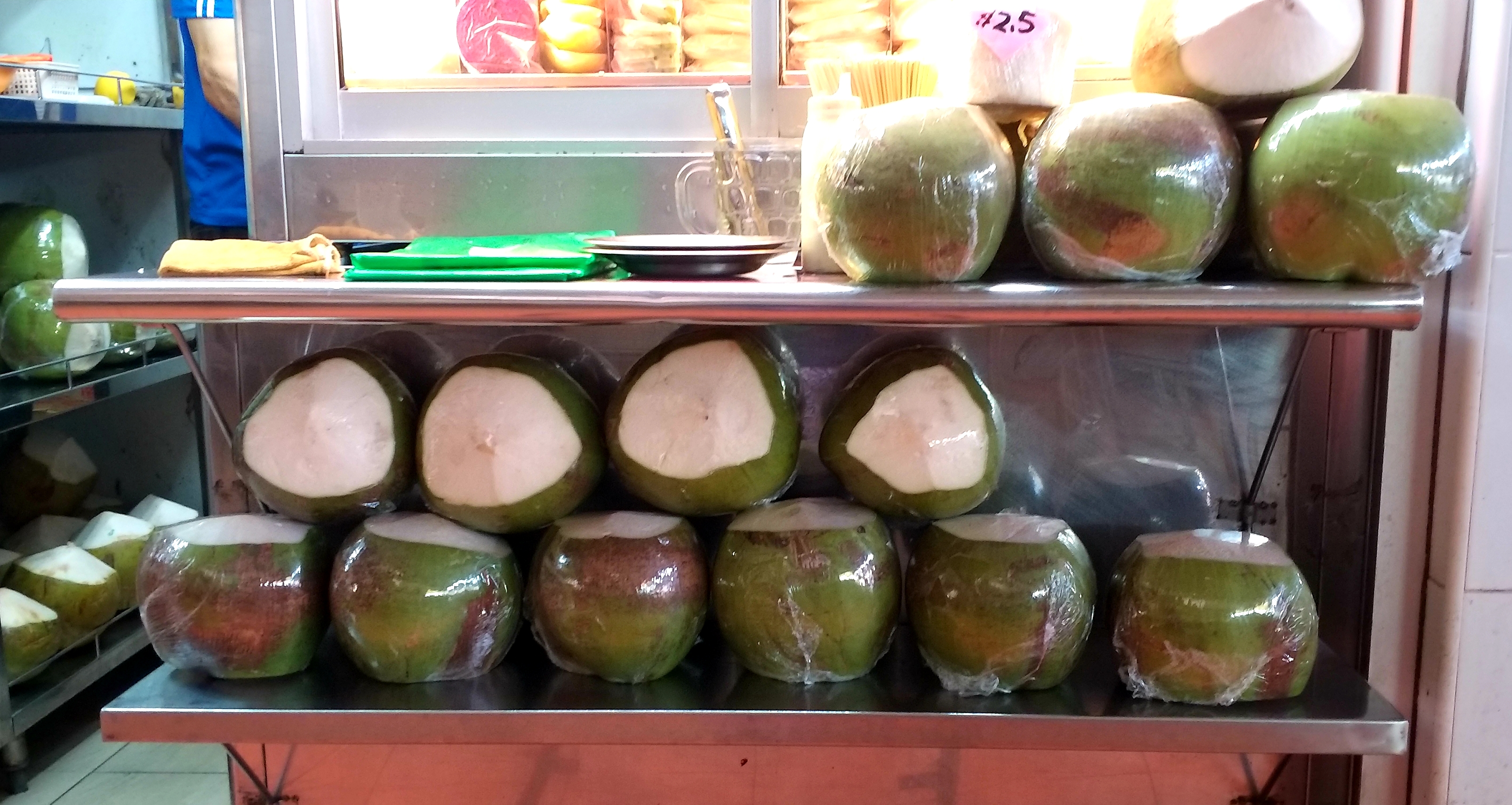 Remove the top of the coconut shell. (Fortunately, I managed to get the fruit drink seller to remove it).