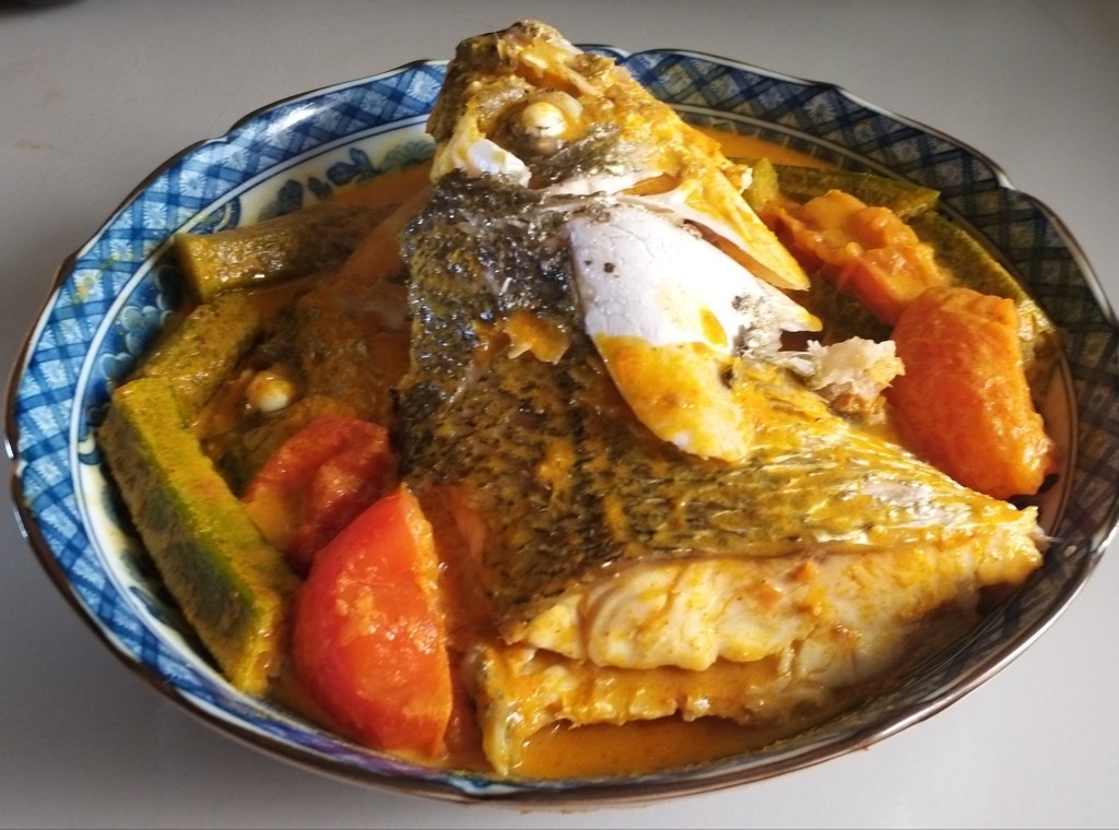 Grunt fish head curry with one portion of this gigantic fish head.