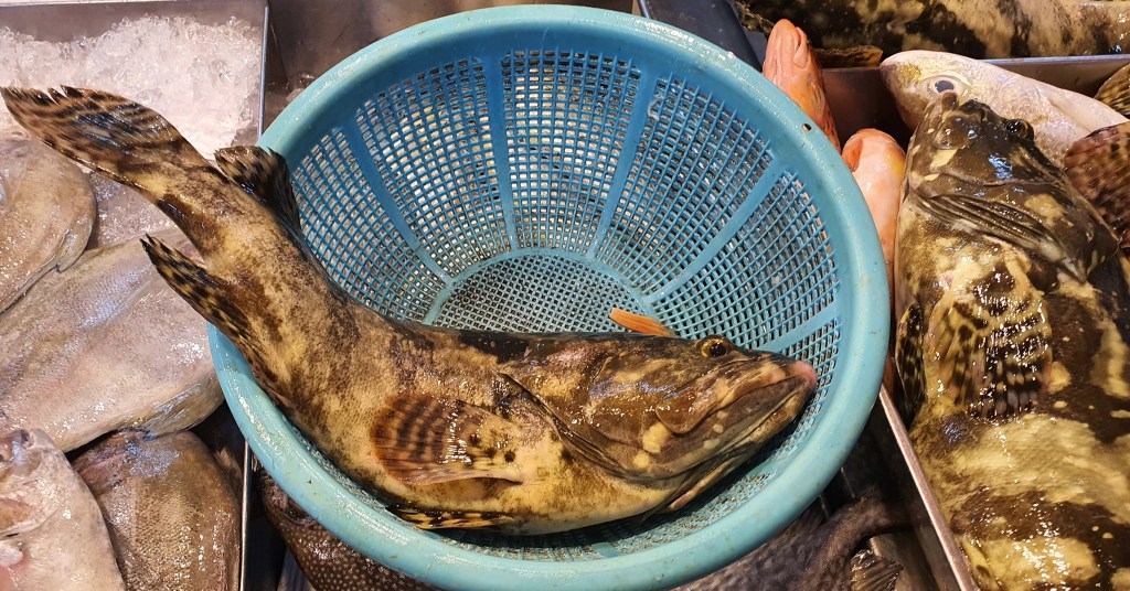 This dark and mottled white spots fish with brown lighter shade and a rounder tail hybrid grouper served at Chinese banquets.