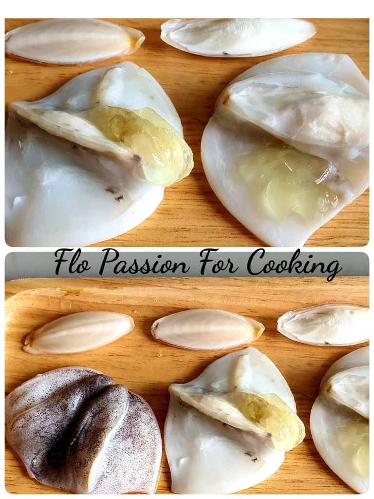 Bisected these cuttlefish and these are some interesting body parts. The roes and cuttlebone.