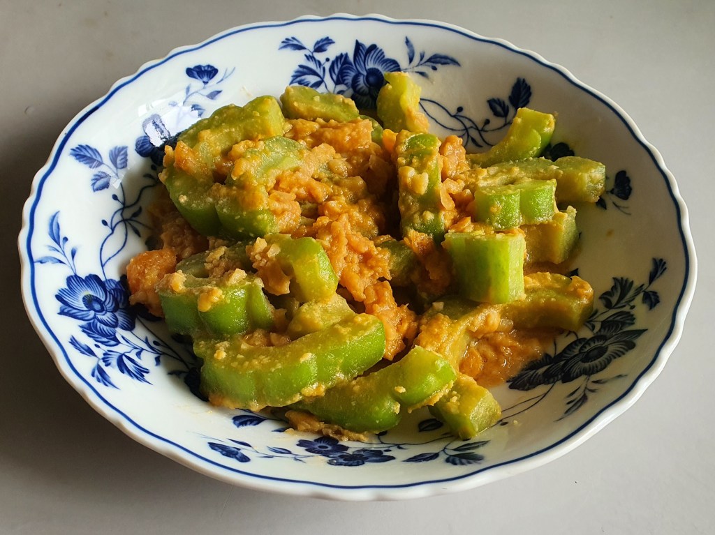 Add the stir fried Bitter Gourd slices and stir for another minutes.