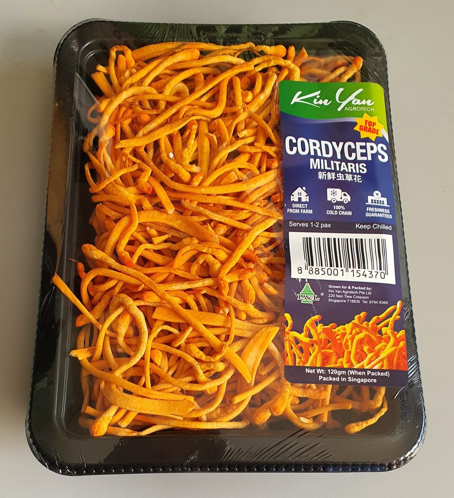 Though commonly known as cordycep flowers, these bright orange, needle like looking are cultivated fungi.
