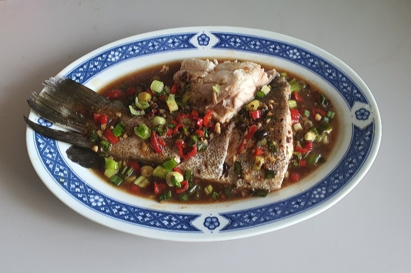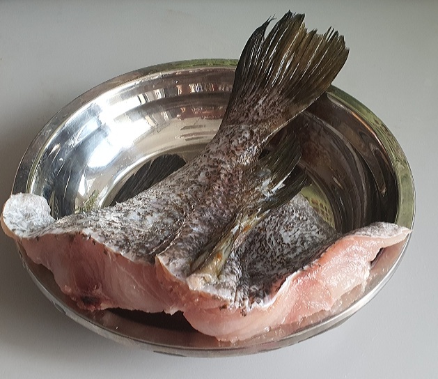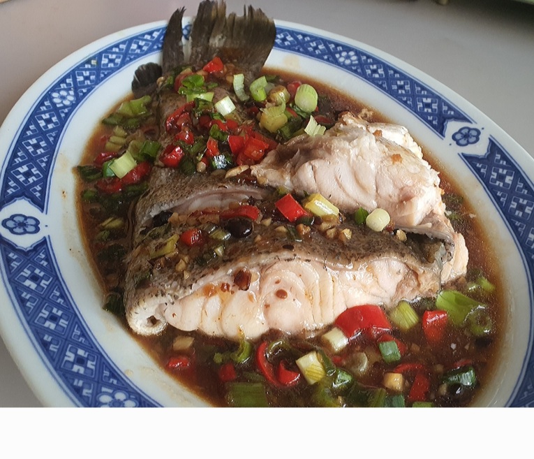 The fish tail is steamed separately and the sauce is added onto the cooked fish and further steamed for another 3 to 4 minutes.