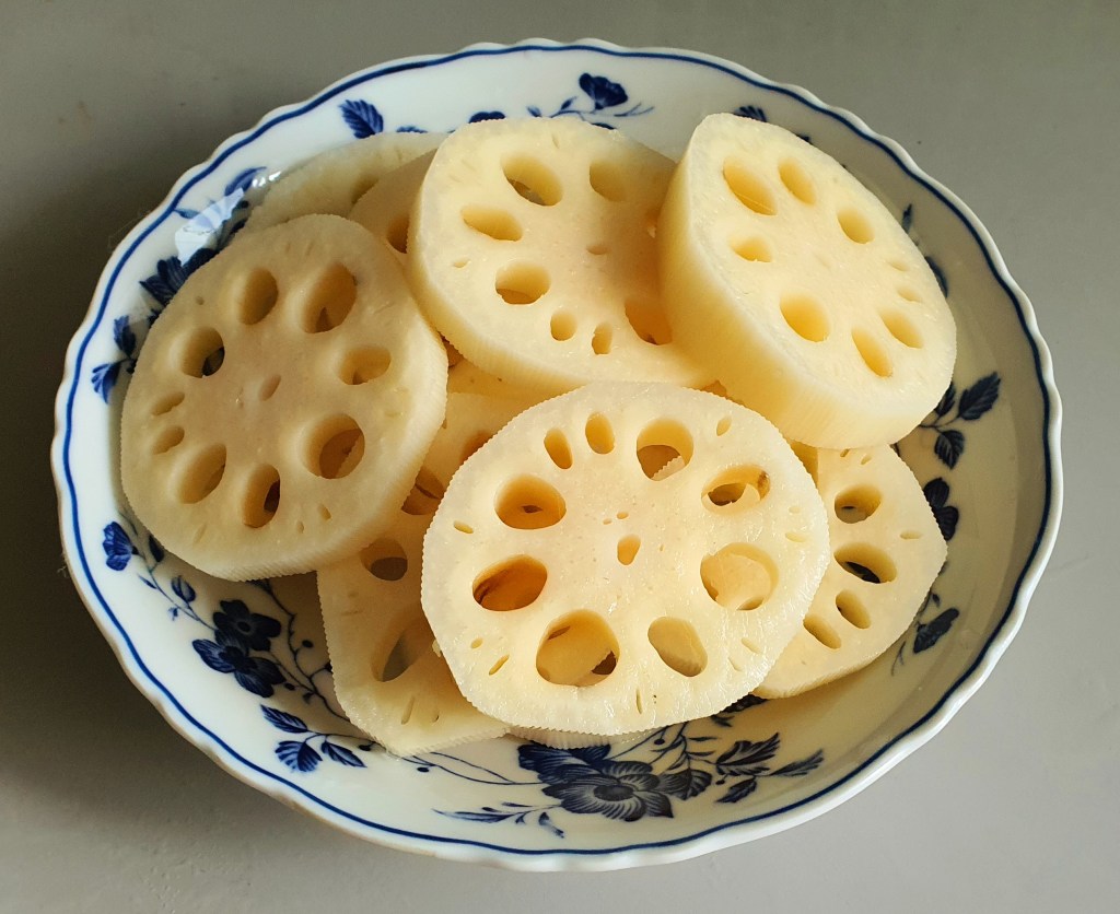 During boiling with ingredients the flavour will absorbed into the lotus roots.