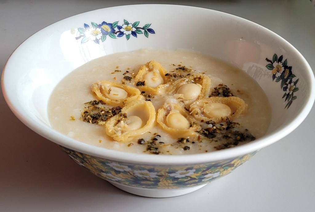 Cook plain porridge to your desired doneness and add the quick stir fry abalones with some garnishing and its ready to serve. 😁