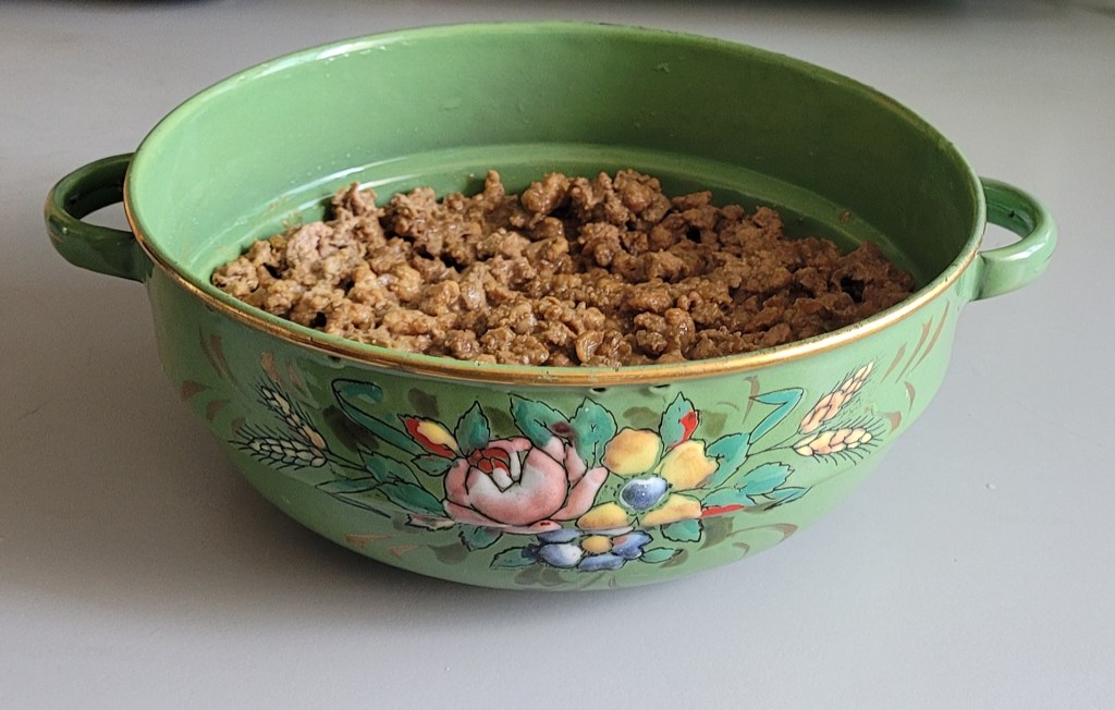 The cooked ingredient ready for rolling with the pig caul.