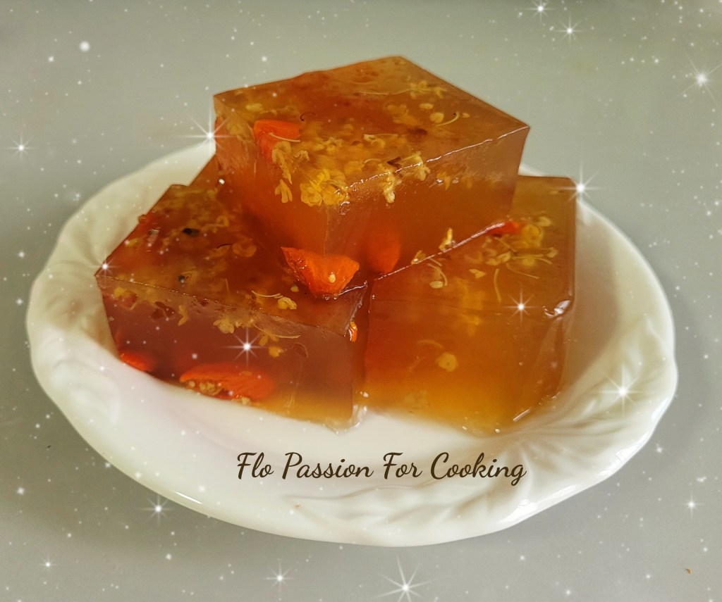 Soak the aromatic dried Osmanthus flower in a bowl of hot water for about 10 mins. Drain and set aside.