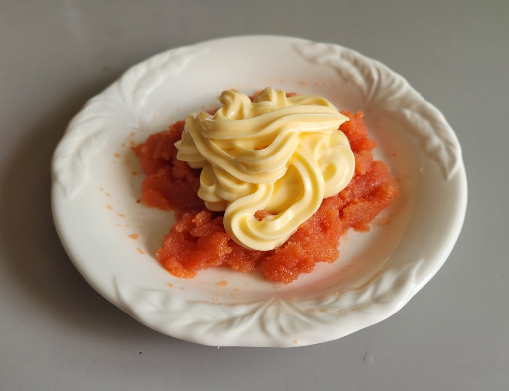 The key ingredient for the sauce is to add the desired quantity of Mayonnaise into the Mentaiko.